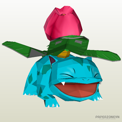 The papercraft Venusaur (#0003) is one of the most popular Pokémon paper models, especially loved by fans of the legendary game and anime franchise. Venusaur is the final evolution of Bulbasaur, distinguished by its massive body, dark green skin, and the giant blooming flower on its back, symbolizing natural strength and photosynthetic power. With the papercraft templates free download, you simply download, print, cut, and glue to complete a vivid 3D model. It is a perfect choice for display, as a gift for fans, or as an addition to your personal Pokémon papercraft collection.