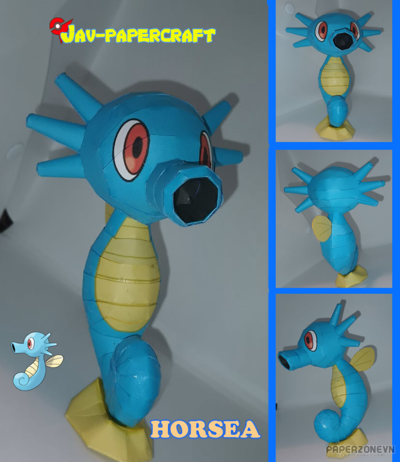 This papercraft project is a beginner-level build. The model captures Horsea’s signature curled tail and its tubular snout perfectly. Because the design is relatively smooth and lacks complex angles, it serves as an excellent introductory piece for anyone looking to start their Pokémon papercraft collection. Download Horsea papercraft, Kanto region Water-type templates free, download now. Would you like me to find the assembly diagram for its evolution "Seadra" or perhaps a "Mystic Water" item to display alongside it?