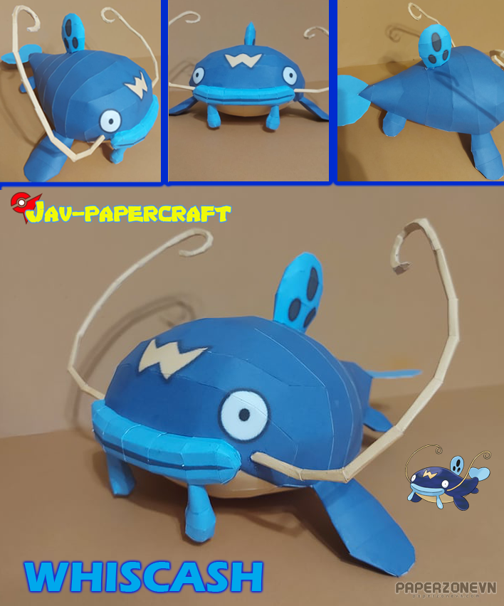 The key to making a great Whiscash is the placement of the yellow "W" mark on its forehead and ensuring the long, slender whiskers are curved naturally rather than bent. Download Whiscash papercraft, Hoenn region Water/Ground templates free, download now. Would you like me to find the assembly diagram for its "Shiny Version" (dark blue/orange) or perhaps a "Rindo Berry" accessory?
