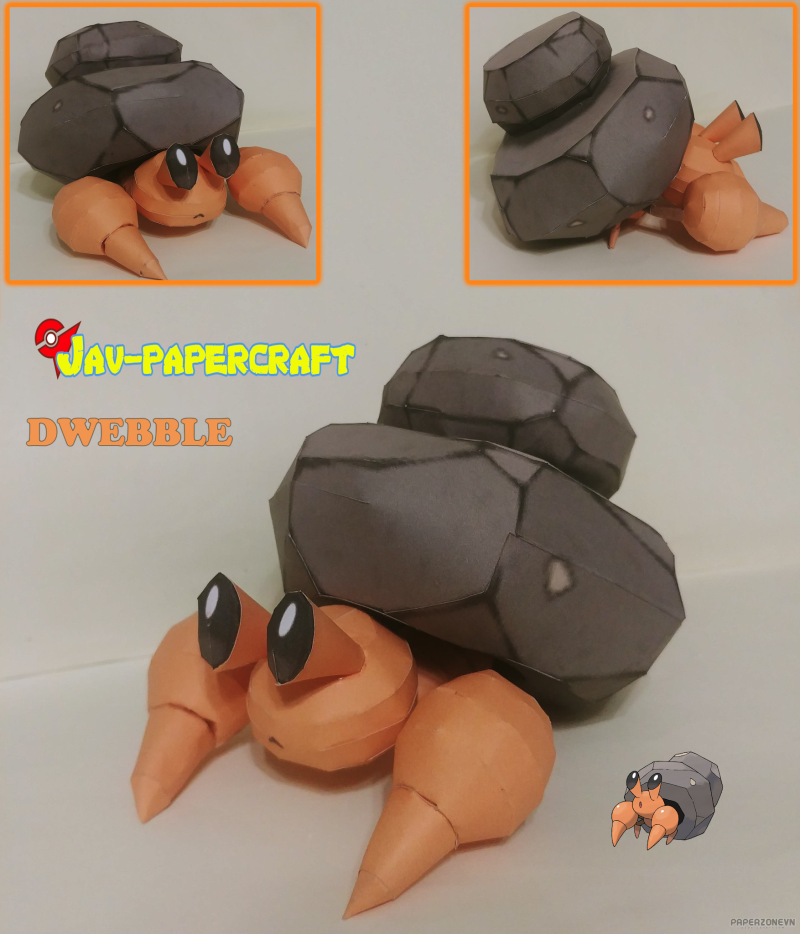 This papercraft project is an easy-level build, perfect for a quick and rewarding crafting session. The highlight is the contrast between the jagged, blocky rock and Dwebble’s cute, rounded features. Download Dwebble papercraft, Unova region Bug/Rock templates free, download now.