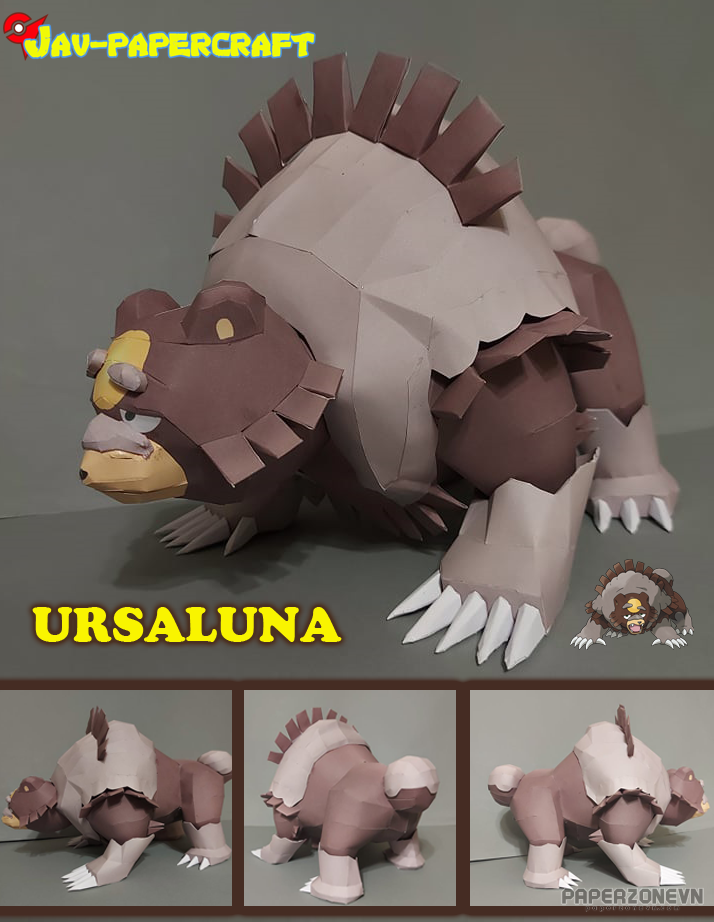 The complexity comes from the "bulky" geometry—maintaining the structural integrity of such a wide, heavy body requires careful internal bracing and precise gluing of the thick, stump-like legs. Download Ursaluna papercraft, Hisui region Ground/Normal templates free, download now. Would you like me to find the assembly diagram for its "Bloodmoon" variant or perhaps a "Peat Block" evolution item?