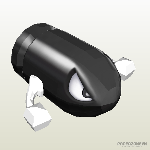 Bring home the iconic Bullet Bill papercraft – the legendary missile from the Mario Bros series. Known for its giant black body, strong arms, and fierce expression, Bullet Bill has always been a surprising challenge for players. Thanks to the free templates, you can easily print, cut, and assemble this iconic character. A perfect addition for fans of Mario and Nintendo collections.