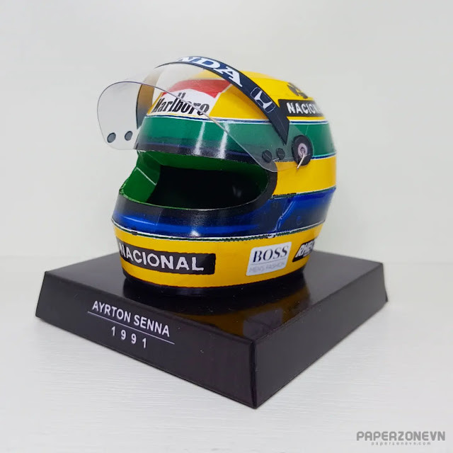 Honor the helmet of a champion with the Ayrton Senna 1991 Helmet Papercraft Templates (Repainted). Ayrton Senna's helmet, famous for its striking Brazilian flag colors (yellow, green, blue), is an icon associated with the McLaren MP4/6 car that propelled Senna to his third and final World Championship title in 1991. This Repainted (Redesign) version retains the classic helmet's shape but features a modernized or custom livery. It is a unique way to blend reverence for Senna's great legacy with contemporary design aesthetics. This papercraft model meticulously simulates the helmet's shape, the visor, and especially the unique Repainted graphics layered over the championship design. It is a fantastic addition to any F1 model collection, helmet models, or pit stop diorama. The templates free download pack is designed with high precision, suitable for intermediate crafters and above, and comes with clear assembly instructions. You will easily print, cut, and glue the templates to form an impressive and meaningful 3D helmet model. Download for free this exclusive papercraft template now. Download the Ayrton Senna 1991 helmet Repainted papercraft templates, free download, free downloadable now and start building this timeless icon!