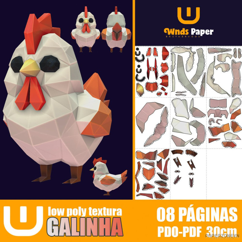 The Rooster papercraft depicts the majestic and colorful rooster, a universal symbol of strength, dawn, and pride. With its vibrant feathers, bright red comb, and confident stance, this paper model beautifully captures