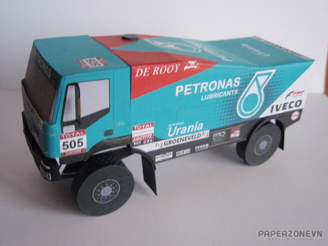 Bring the winning spirit and durability of a top Dakar truck team to your collection with the Iveco Trakker Truck Papercraft Templates from the 2012 Dakar Rally. The Iveco Trakker, fielded by the Petronas Team De Rooy Iveco, was instrumental in securing the team's overall success that year. Engineered to withstand the toughest challenges in South America, the Trakker is renowned for its excellent off-road handling and high mechanical reliability. Whether utilized as a competitive racer or a fast support vehicle, the Trakker is an icon of Italian/Dutch truck engineering in the cross-country rally marathon. This papercraft model meticulously simulates the robust shape, the cab, large off-road tires, and notably the distinctive blue, white, and yellow Petronas livery and sponsor logos from Dakar 2012. It is a fantastic addition to any collection of racing truck models, Dakar Rally vehicles, or extreme terrain dioramas. The free download templates set is designed with high precision, suitable for intermediate crafters and above, and comes with clear assembly instructions. You will easily print, cut, and glue the templates to form an impressive and realistic 3D Iveco Trakker truck model. Download for free this exclusive papercraft template now. Download the Iveco Trakker Dakar 2012 papercraft templates, free download, free downloadable now and start building this desert conqueror!