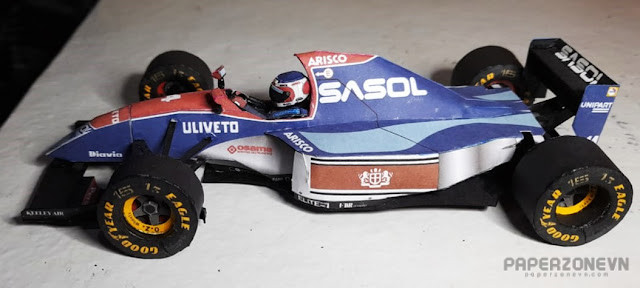 Bring the car linked to a magnificent rain performance to your collection with the Jordan 193 Papercraft Templates of Brazilian driver, Rubens Barrichello, from the 1993 European Grand Prix (Donington Park). The Jordan 193, powered by a Hart V10 engine, was a classically styled yet potent car, especially in wet conditions. This is the machine that Barrichello, in his debut season, drove spectacularly on the drenched circuit, showcasing his raw talent. Although he unfortunately retired while running in third place, his performance left a huge impression. This papercraft model meticulously simulates the aerodynamic shape, wings, cockpit, and notably the distinctive blue, green, and white Sasol/Barclay Jordan livery. It is a fantastic addition to any collection of classic F1 cars, motorsport models, or a racetrack diorama. The free download templates set is designed with high precision, suitable for intermediate crafters and above, and comes with clear assembly instructions. You will easily print, cut, and glue the templates to form an impressive and realistic 3D race car model. Download for free this exclusive papercraft template now. Download the Jordan 193 Barrichello papercraft templates, free download, free downloadable now and start building this Jordan F1 machine!