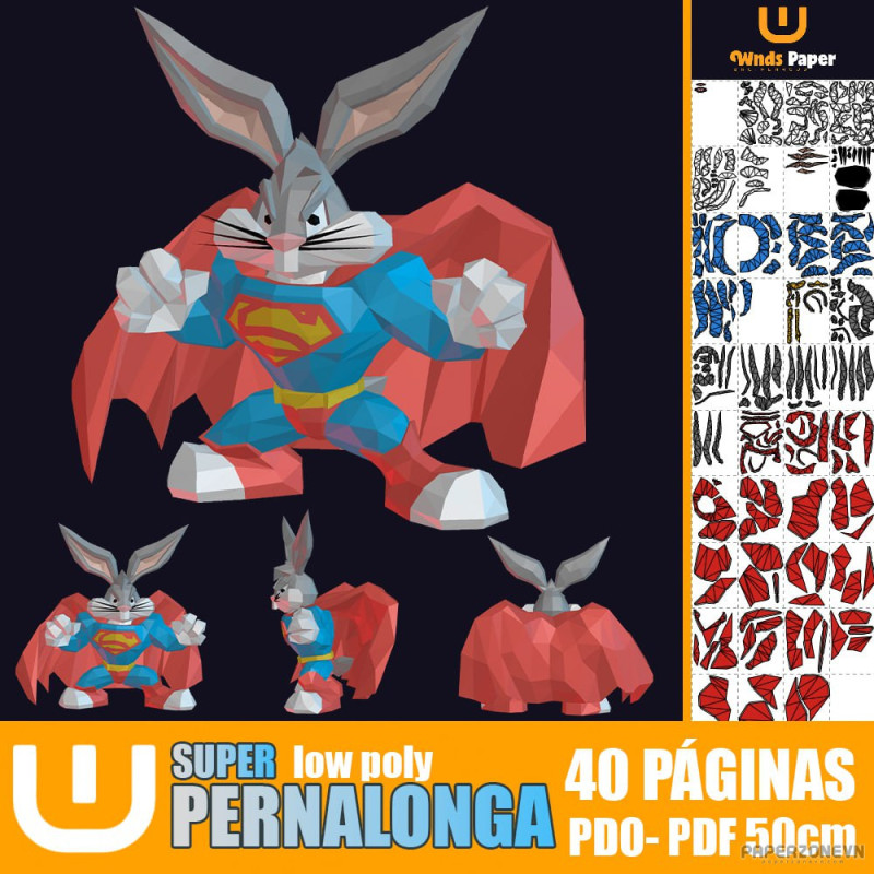 The Bugs Bunny papercraft in Super-Rabbit superhero style reimagines the iconic Looney Tunes character as a fun and powerful hero. Dressed in a bright blue and red costume with a flowing cape and his trademark mischievous...