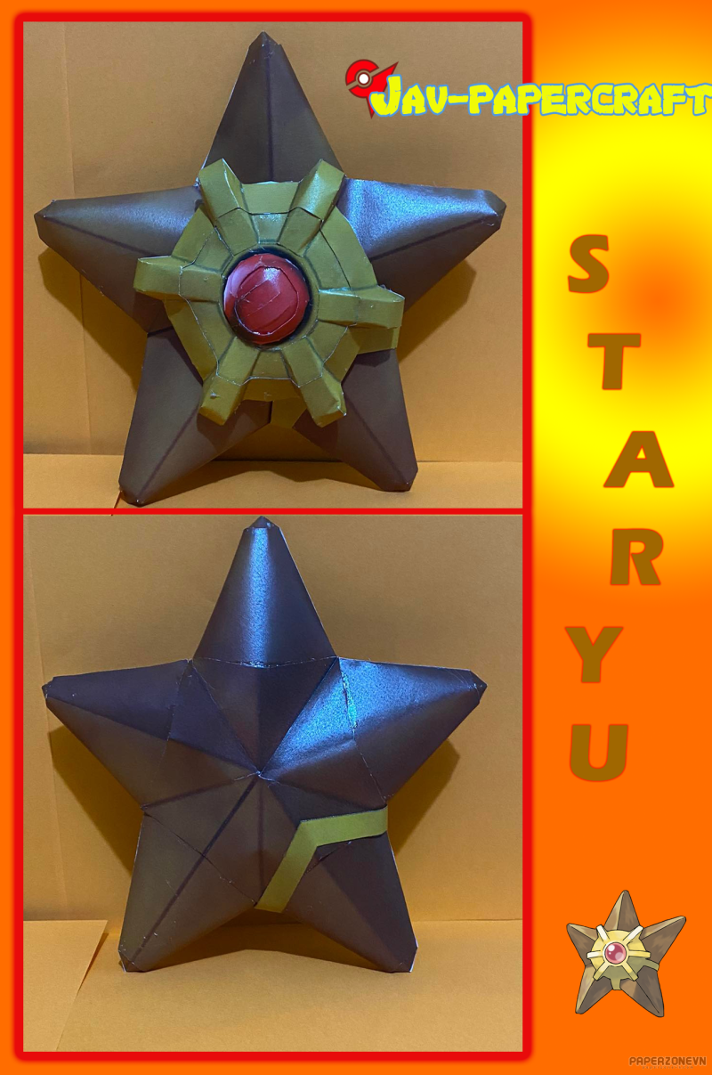 Staryu is an enigmatic Water-type Pokémon known for its perfect five-fold symmetry and its golden, leathery skin. Its central core, a brilliant red jewel, glows brightly when it communicates or uses powerful beam attacks like Swift...