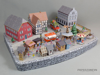 [Christmas Market in Rheinallee] Papercraft Templates – Detailed 3D Festive Town Square/Street Scene | Free Download