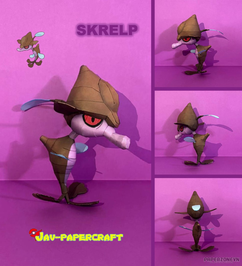 The Skrelp (#0690) papercraft offers a unique paper model of the Poison/Water-type Pokémon from Generation VI. Skrelp’s design resembles decayed seaweed, with a brownish-purple body and a curled tail mimicking underwater plants. This clever...