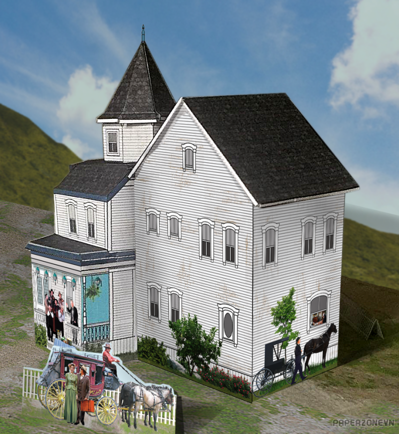Throughout the Little House books, Boarding Houses played a vital role in the expansion of the West. Whether it was the house in Burr Oak or the places where Laura stayed while teaching school, these buildings were centers of community and hard work. This papercraft model captures the functional yet classic design of an 1880s boarding house, featuring multiple rooms, a sturdy porch, and a welcoming entrance. Download Boarding House papercraft, historical building templates free, download free, 19th-century DIY models.